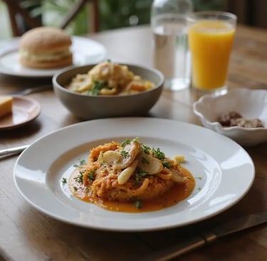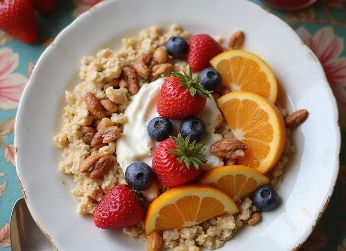 Opt for a meal that combines protein, healthy fats, and whole grains, like oatmeal topped with nuts and berries or scrambled eggs with avocado on whole-grain toast.