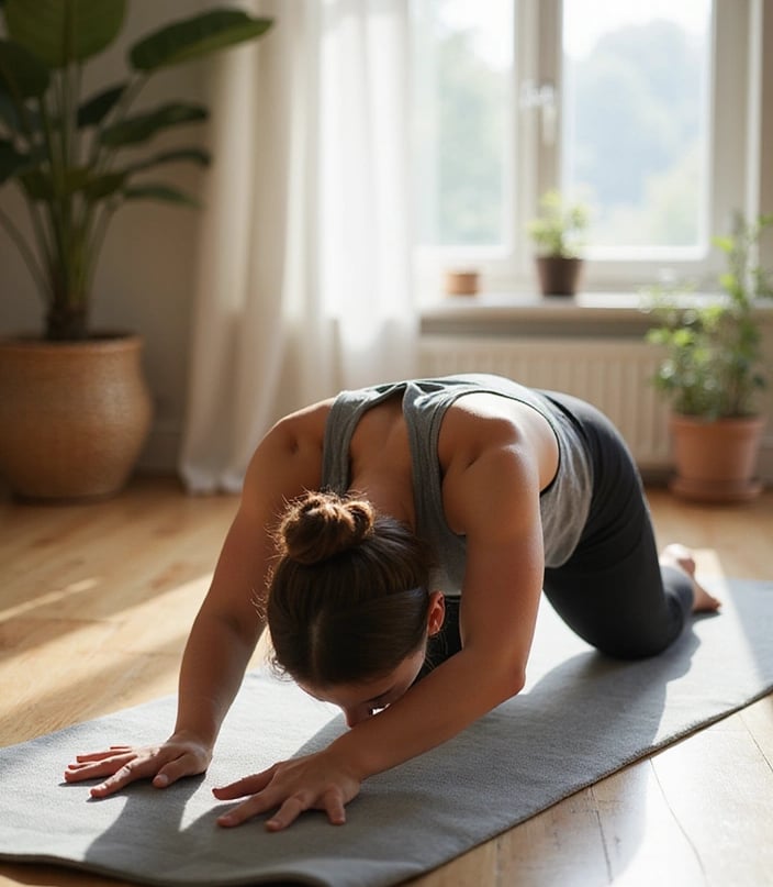 This dynamic duo of stretches is perfect for loosening up the spine and warming up your back muscles. Start on all fours, hands under shoulders, knees under hips. The Cat-Cow stretch is about flowing between two positions: arching your back while inhaling (Cow) and rounding it while exhaling (Cat). This movement can release tension and improve spinal flexibility, making it ideal for those stiff mornings!